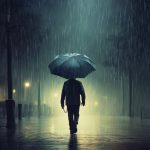 Одет: светло-коричневая ветровка, синие штаны, красные кроссовки