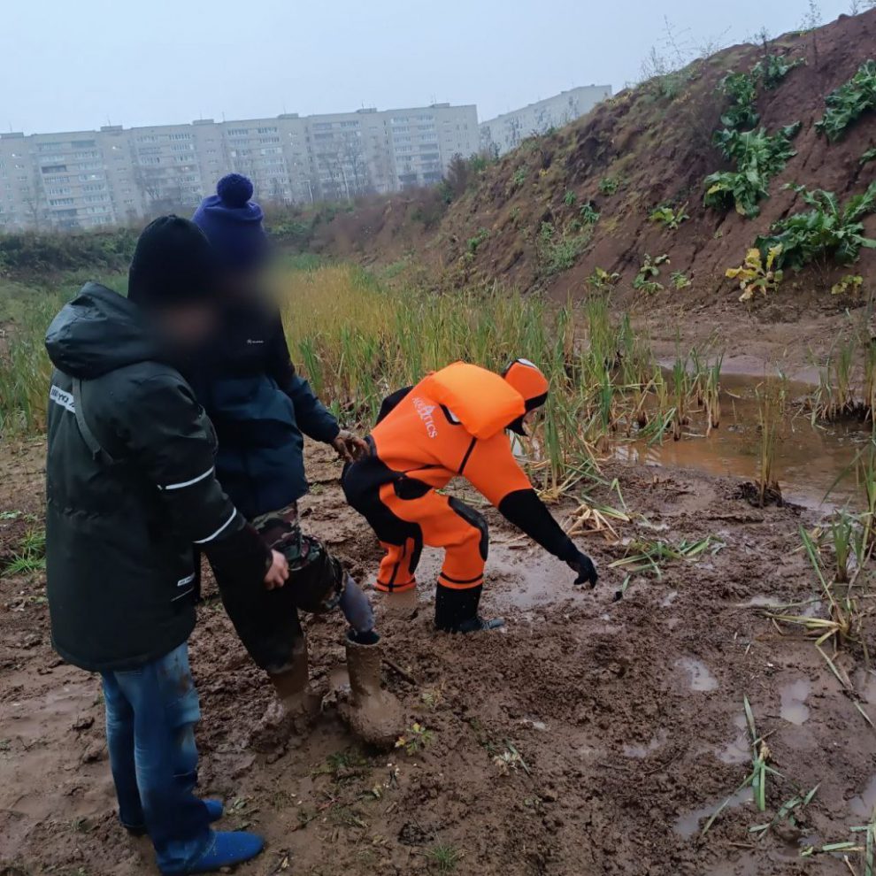 Спасатели оперативно извлекли детей из болота.