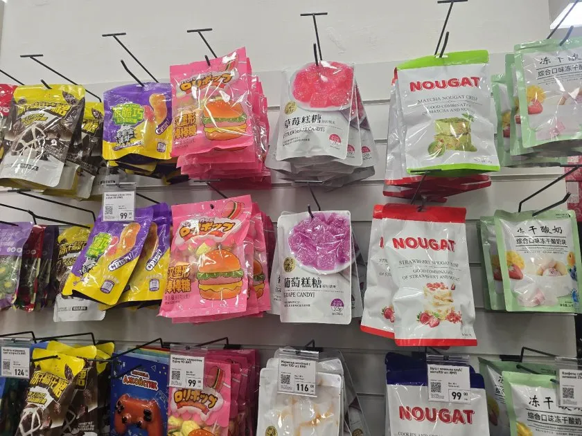 - Мармелад-зверята, шипящая карамель и пара азиатских напитков для антуража.